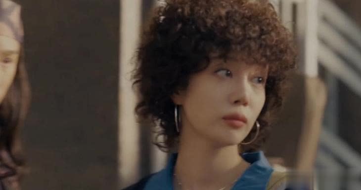 烫着小卷毛的爆炸头,带着圆圆的浮夸大耳环,露着肩膀露着腿。