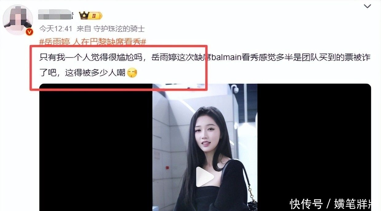 耐人寻味的是,同一时段内,BALMAIN中国区官微高调转发文咏珊启程照并配文“Bienvenue à Paris”,李惠利则在小红书晒出加盖品牌公章的纸质邀请函及后台通行证照片;唯独岳雨婷相关动态,从抵法报道到秀场前夕,BALMAIN全球及亚太团队全程零互动、零认证、零祝福,甚至连基础的品牌话题联动都未曾出现。